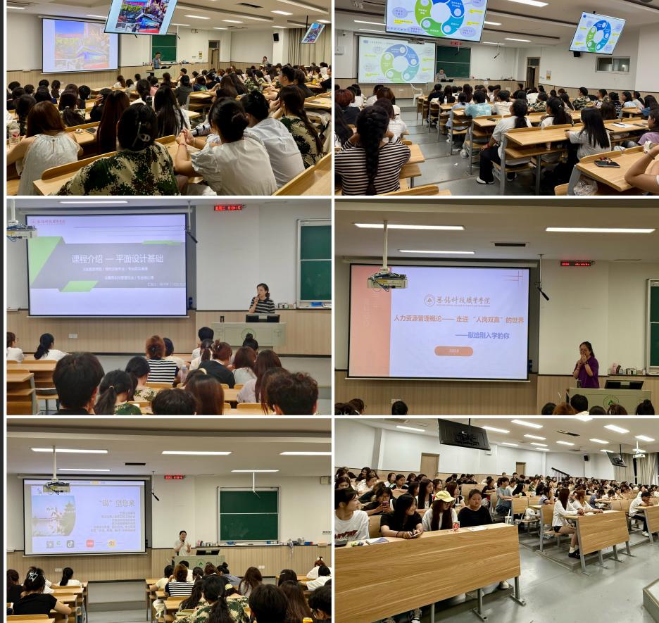 在会展策划与管理专业新生活动现场,学院邀请了会展行业的企业导师来做深度分享。来自灵山文旅集团、无锡太湖会展集团国际会议中心的企业导师们分别带来了定制化 “职业礼包”:会展行业导师展示了无锡灵山文旅文创展、会展数字化运营系统等案例,邀请新生参与“企业开放日”活动,并鼓励学子们:通过实地参观,可以看到专业知识如何转化为实际成果,更有信心学好专业! 企业导师的分享,让新生真切感受到专业的市场价值,职业信心大幅提升。