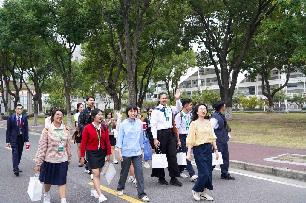仪式结束后,在中方教师的带领下,泰国留学生团组参观了风景如画的校园。从波光粼粼的人工湖到设施先进的教学楼,从菜色丰富的学生食堂到功能齐全的体育馆,留学生们对未来的学习与生活环境充满了期待。