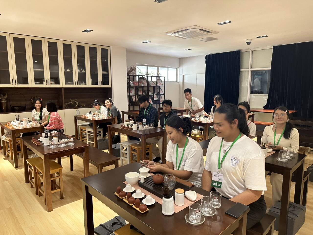 自10月13日泰国团组抵达起,留学生“技能创新班”展开了为期一月的全方位学习之旅。课程设置紧密对接酒店管理与数字化运营前沿,涵盖了《前厅服务与数字化运营》、《酒店人力资源管理》等核心专业课程。同时,深度融合语言学习与文化浸润,通过《对外汉语》、《中国传统文化》等课程,以及茶艺、剪纸与无锡泥人非遗体验、中国象棋、乒乓球等特色技能实践,构建了“专业赋能、语言沟通、文化理解”全方位的培养课程体系,有效促进了学生综合素养的全面提升。