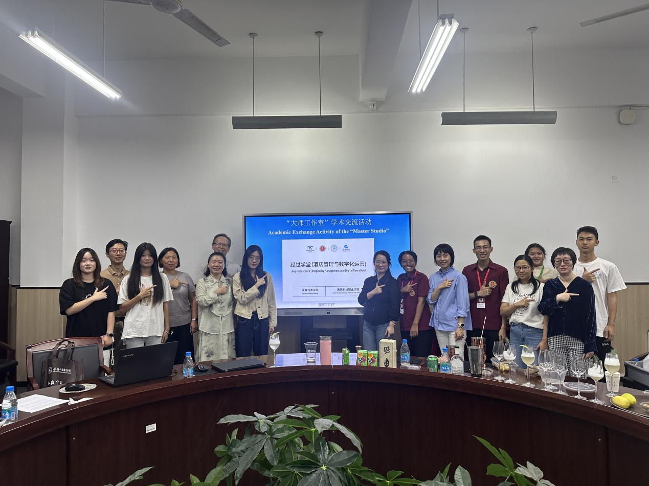 10月15日,泰方尼塔亚老师与塔塔索博尔老师面向我校酒管专业一百余名学生开展了鸡尾酒实践教学,中泰双方10月17日,作为“经世学堂”项目重要平台的“大师工作室”举办了线下国际学术交流活动。泰方尼塔亚老师以《酒店环境中的趣味服务》为题开展讲座,并与我校教师就“酒店管理与服务创新”进行深入研讨。钱万万老师分享了我校在现代学徒制改革中的探索。尤为引人注目的是,泰方教师将《Food and Beverage》核心课程“搬”到现场,进行了鸡尾酒调制与果雕等实操展示,中方师生积极参与互动,再现了此前线上交流中探讨“泰式草本饮料”与“中国茶饮”融合的场景,体现了双方合作的一脉相承与持续深化。