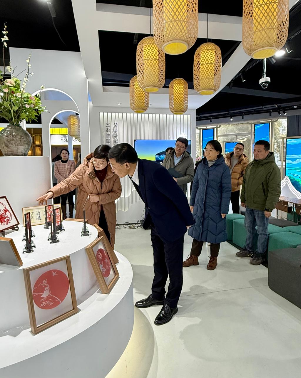 2026年1月19日,无锡科技职业学院文化旅游学院“地方非遗传承与创新”与“平面设计基础”两门课程的联合优秀成果展,在博雅楼C113智慧会展多功能综合实训室正式启幕。本次展览以“江南文化 非遗记忆”为核心主题,集中展示24级会展策划与管理、24级现代文秘专业学子的匠心佳作,展期持续至1月26日。校领导张国华书记、邹洪芬副院长、教务处赵航涛处长,文化旅游学院领导、授课教师及学生代表齐聚一堂,共赴这场融汇江南雅韵与非遗技艺的文化盛宴。