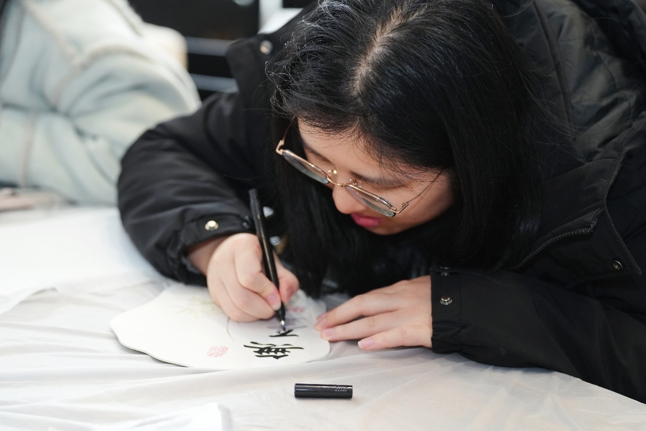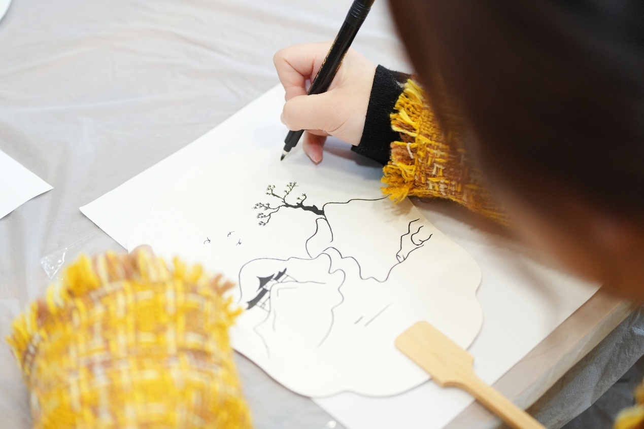 漆扇体验区同样热闹非凡,老师手把手教大家颜料调配、图案绘制的技巧。大家手执素面扇,蘸取缤纷颜料,或勾勒清雅山水,或描绘烂漫繁花,或题写美好寄语,在扇面之上勾勒心中美好。一笔一画间,尽显匠心,原本普通的扇子,在大家的创作下变成了兼具实用与艺术价值的专属文创。